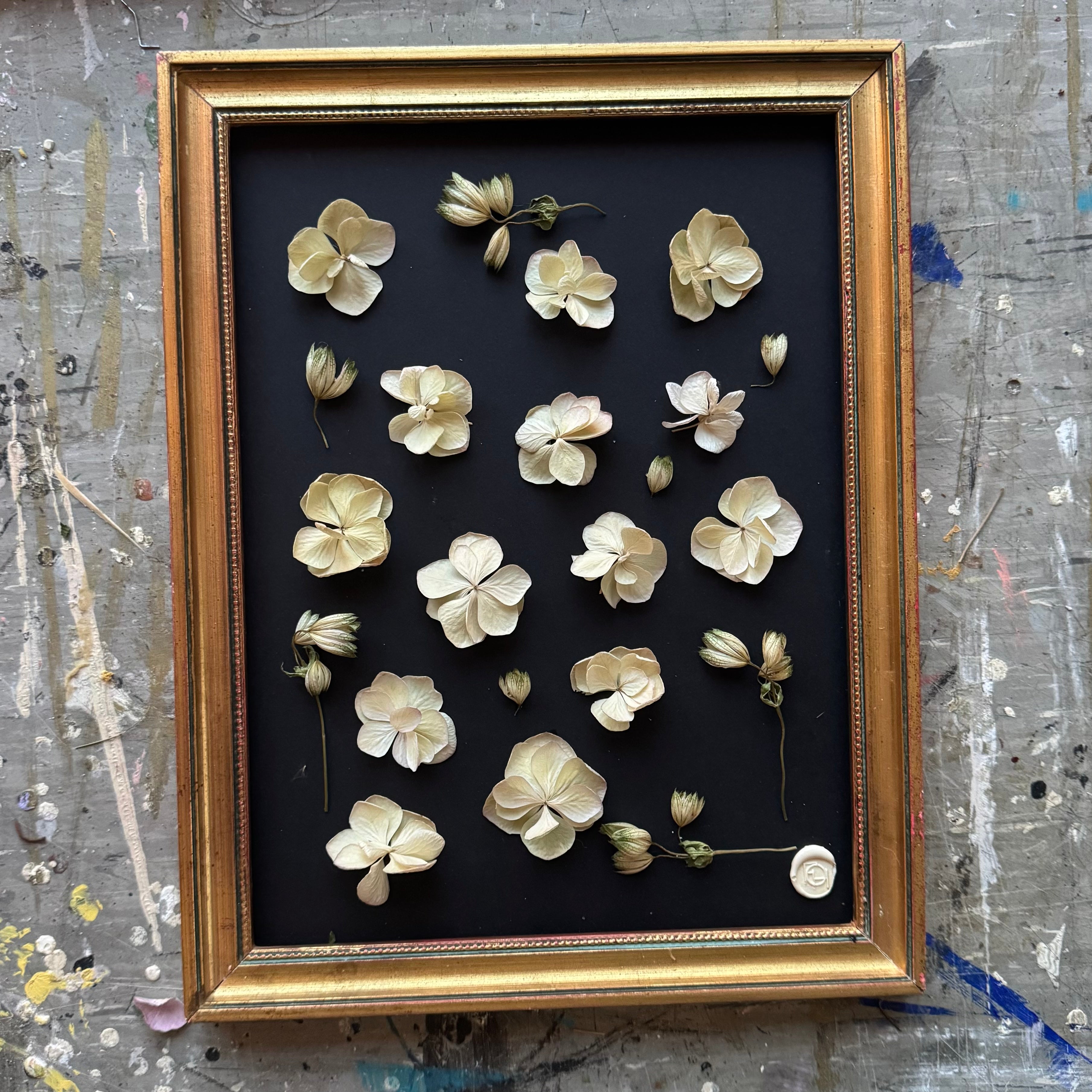 Ingelijste gedroogde hortensia’s & Zeeuws knoopje